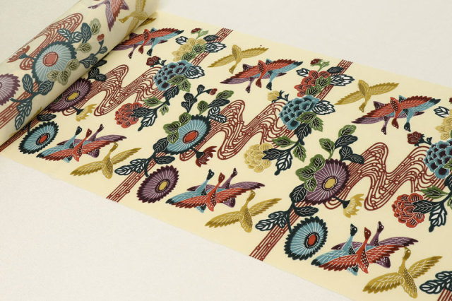 型紙を使い、防染糊を置いてから手作業で彩色するため、一枚ごとに味わい深い仕上がりとなります。