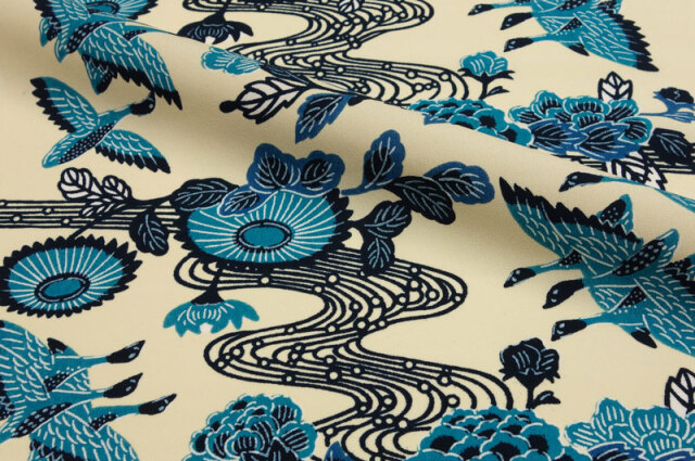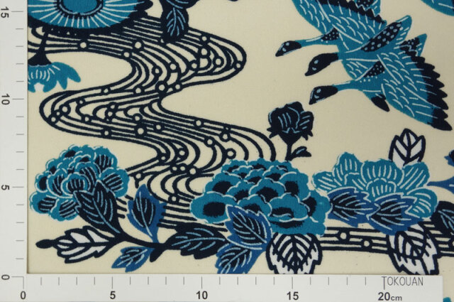 紅型(びんがた) 流水花に鴨(白・紺)