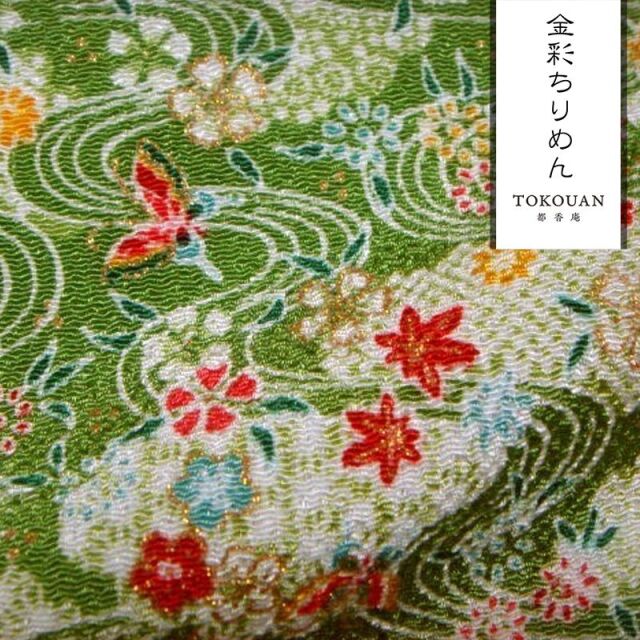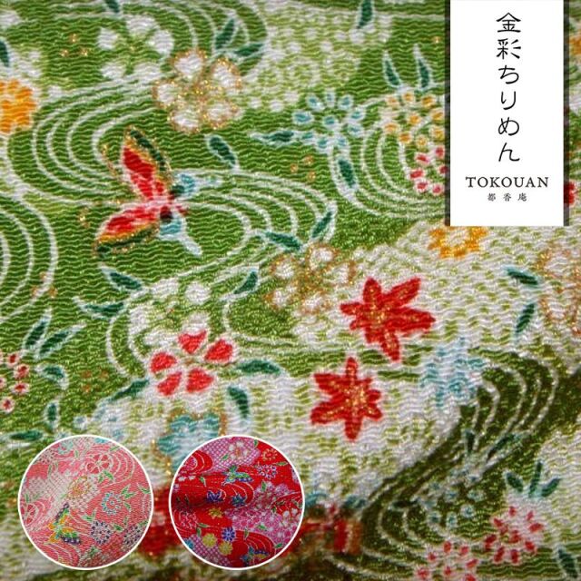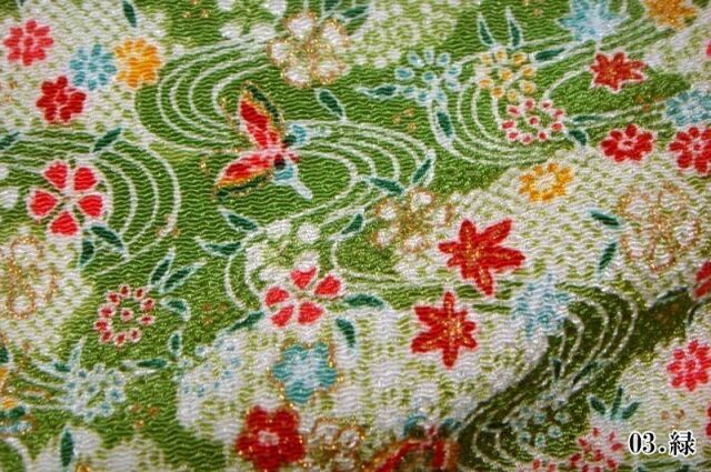 京友禅 金彩ちりめん 流水文に花と蝶(全3色)