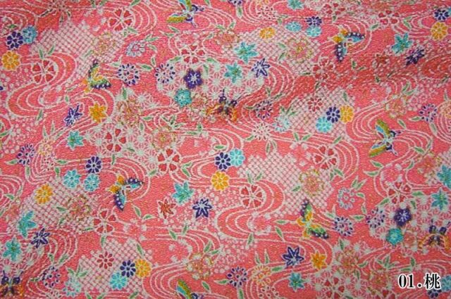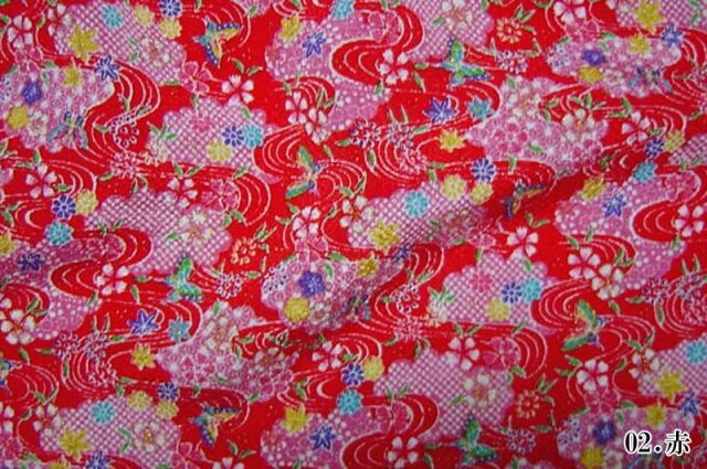 金彩ちりめんは、表面にシボ(凹凸)のある縮緬生地に、きらりと光る金彩を施した和柄生地です。