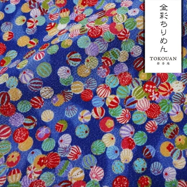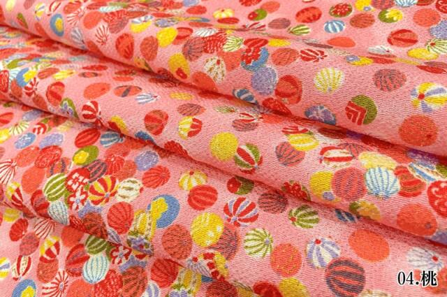 金彩ちりめんは、表面にシボ(凹凸)のある縮緬生地に、きらりと光る金彩を施した和柄生地です。