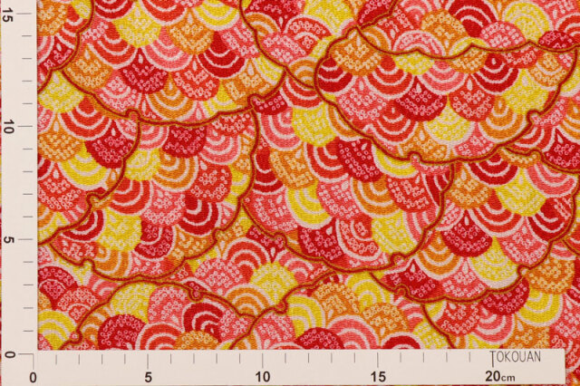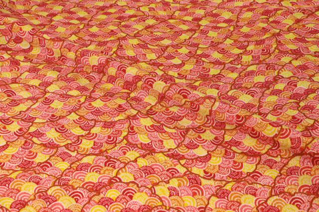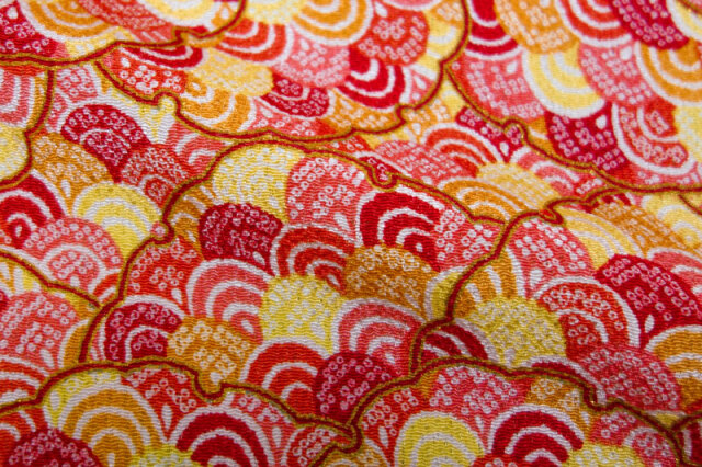 金彩ちりめんは、表面にシボ(凹凸)のある縮緬生地に、きらりと光る金彩を施した和柄生地です。