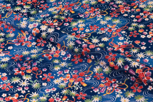 染色によって表現された柄は、季節感や物語性のあるモチーフが多く、和のクラフトにぴったりの布地です。