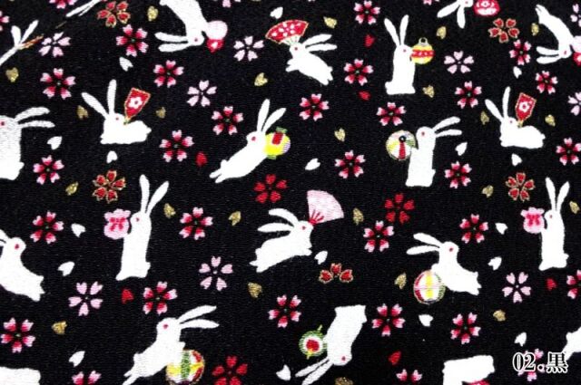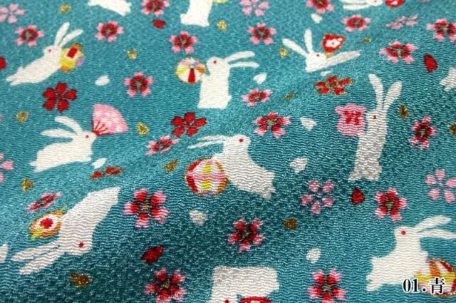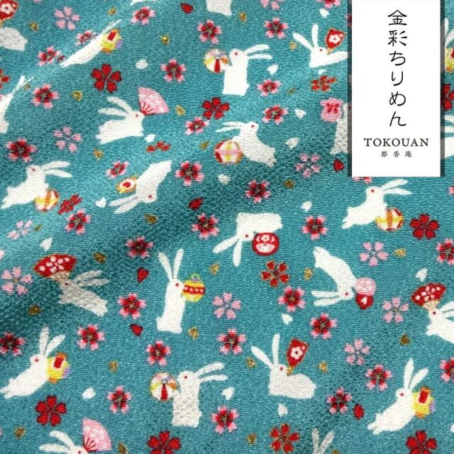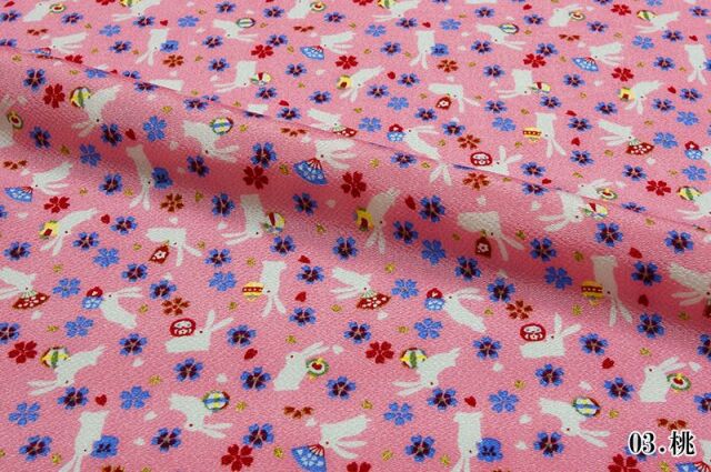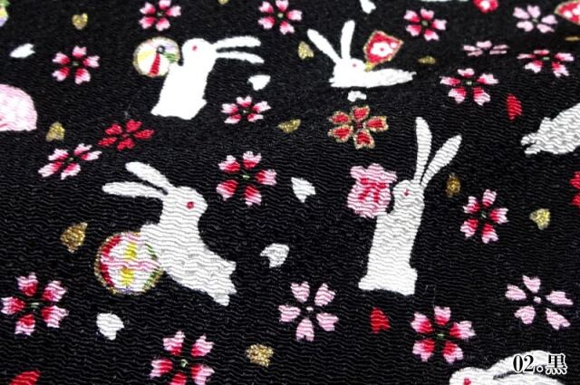 和柄 生地 京友禅 金彩ちりめん おもちゃに兎 (全3色) 10cm単位 切り売り