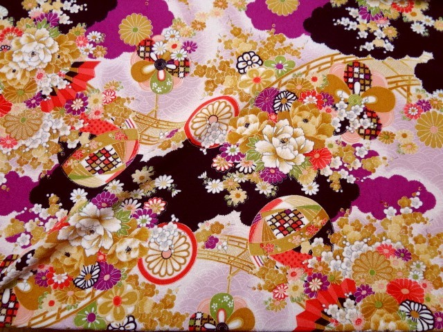 古典柄文様の美しい手捺染のちりめんです。