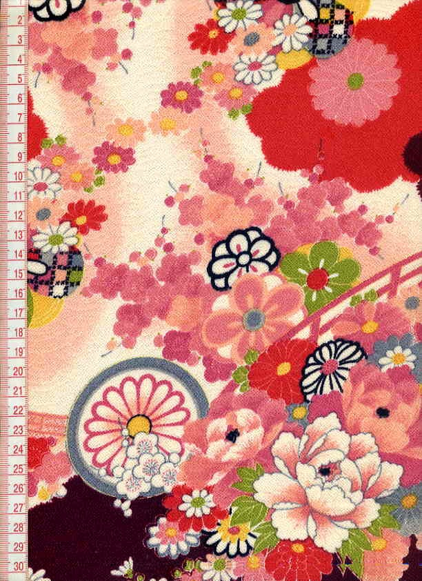 古典柄文様の美しい手捺染のちりめんです。