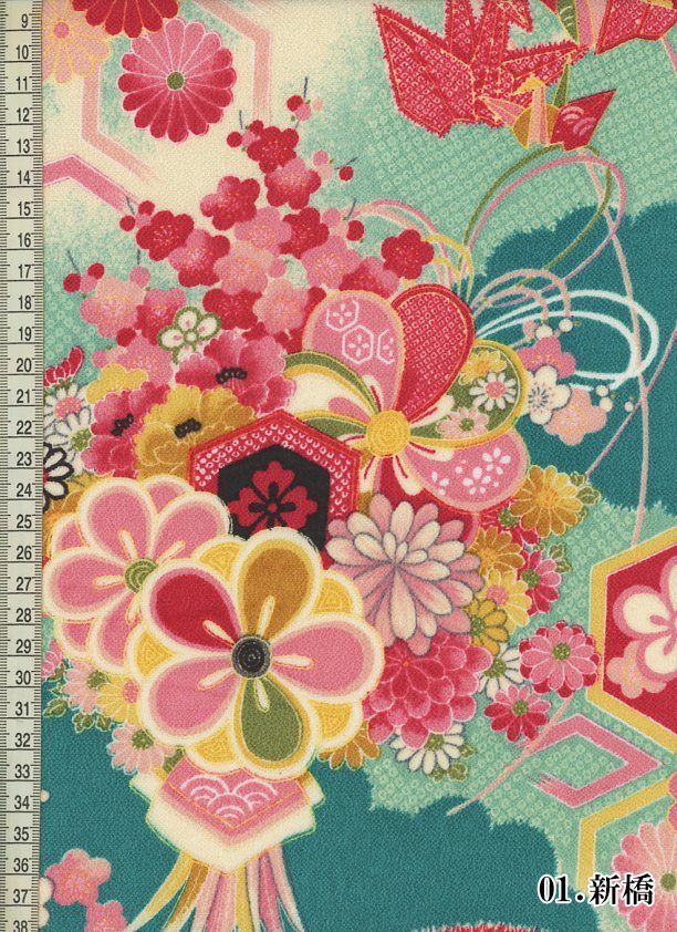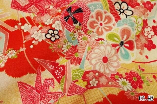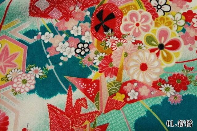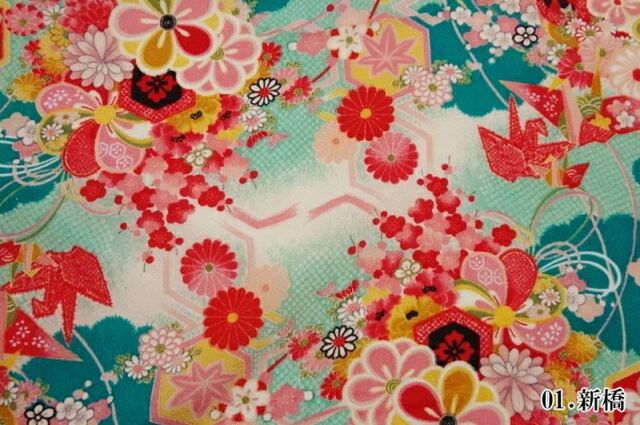 和柄 生地 京 一越ちりめん 折鶴 (全3色) 10cm単位 切り売り