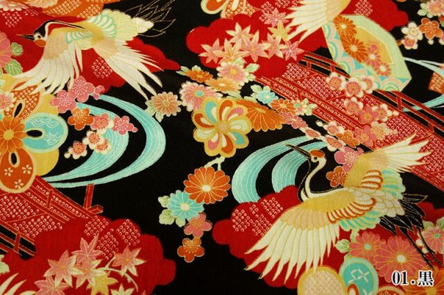 翼を広げ飛翔する鶴が表現された文様の一越ちりめんです。