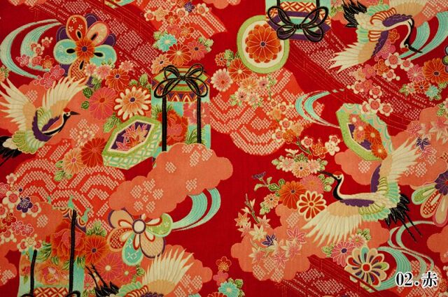 京・一越ちりめん 鶴に貝桶(全3色)