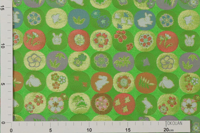金襴織物 兎丸文(若葉)