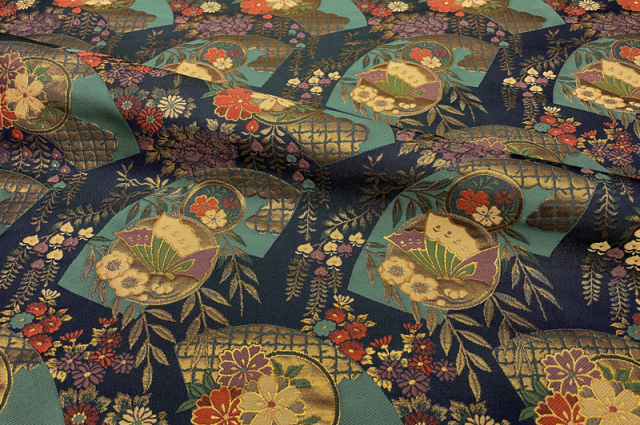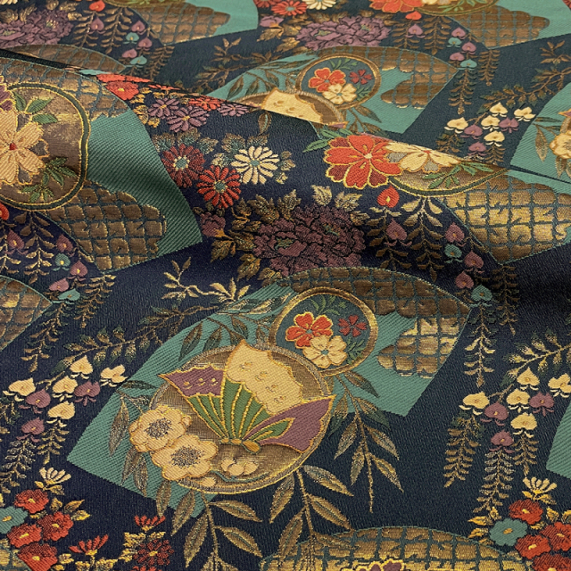 京都西陣織・金襴生地 地紙蝶文(鉄紺)