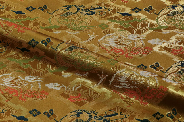 金糸で織り込まれた影井桁(かげいげた)文に雲龍柄の金襴生地です。