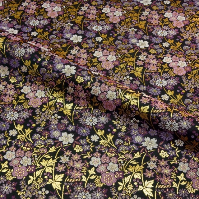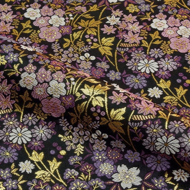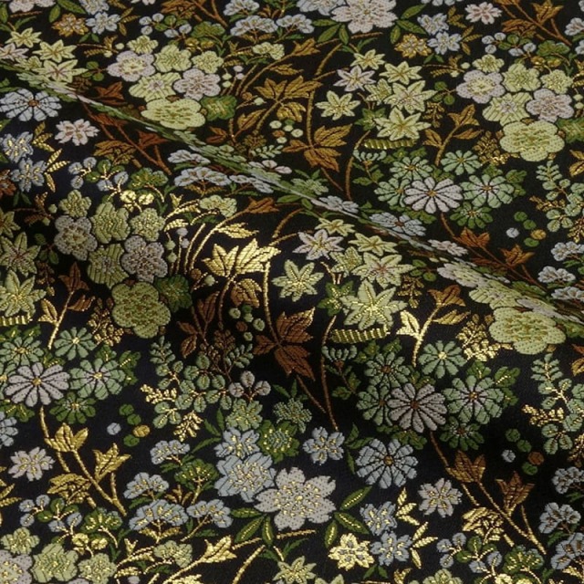 黒地に緻密に再現された草花文様を織り出した金襴生地です。