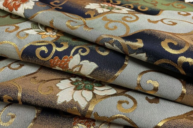 金らんと呼ばれるこの和模様の布地は、色や柄によりかっこいい、かわいい、エキゾチック、オリエンタル、豪華、高級、と印象が変わります。職人の技が詰まった一品で、和風の衣装やインテリアの装飾など多岐にわたる用途に応用できます。