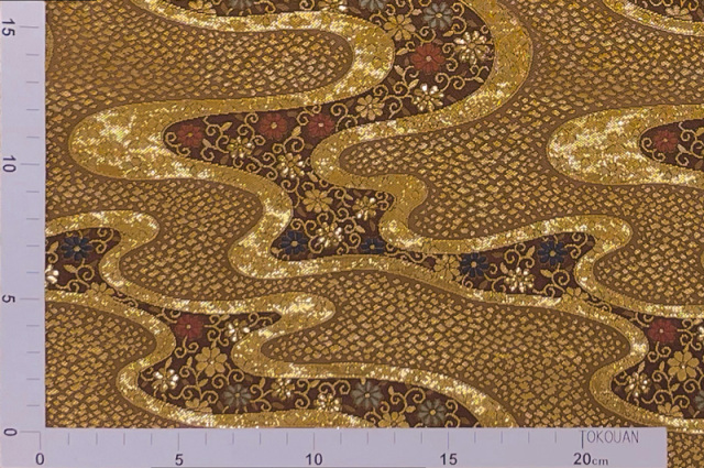 京都西陣織・金襴生地 金砂子花流水(黄橡色)