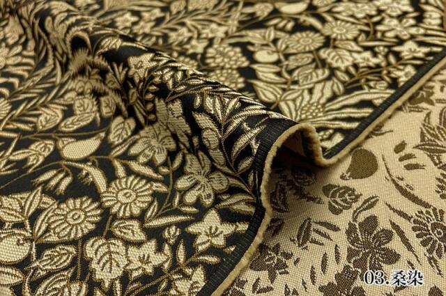 こちらの和柄生地は草花と果実という自然の恵みを織り込んだ上品な無金の金襴生地です。細やかな織りで表現された文様は、まるで絵画のような美しさを放ち季節を問わずお使いいただけます。