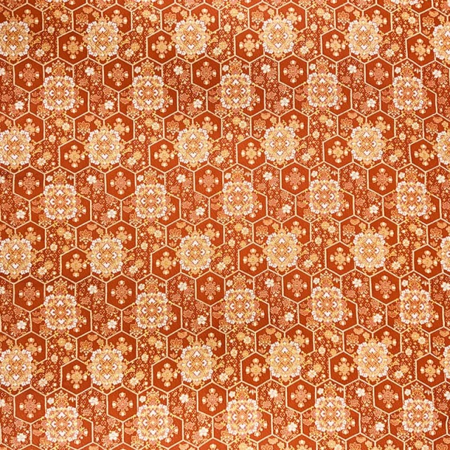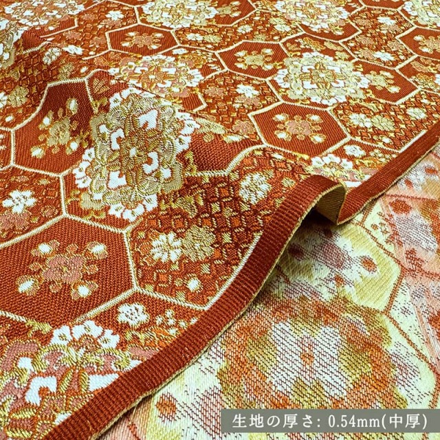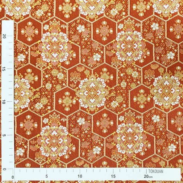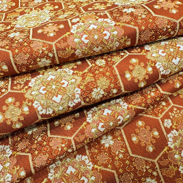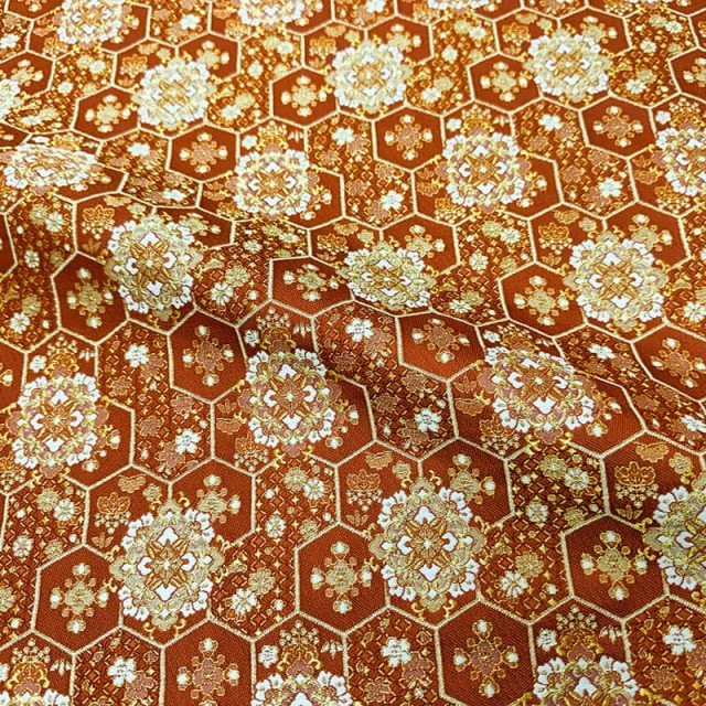金襴織物 瑞祥亀甲華文(紅樺色)