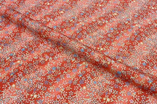 金彩ちりめんは、表面にシボ(凹凸)のある縮緬生地に、きらりと光る金彩を施した和柄生地です。