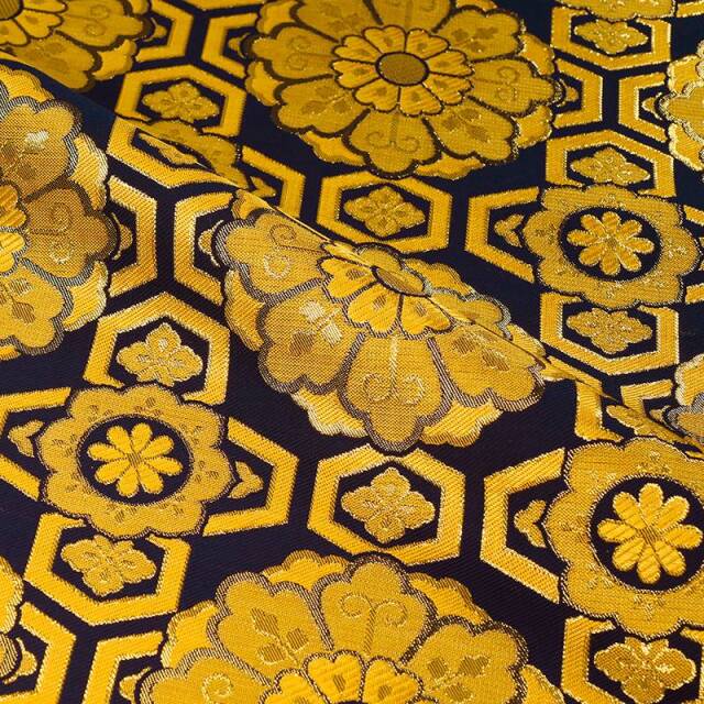 金らんと呼ばれるこの和模様の布地は、色や柄によりかっこいい、かわいい、エキゾチック、オリエンタル、豪華、高級、と印象が変わります。職人の技が詰まった一品で、和風の衣装やインテリアの装飾など多岐にわたる用途に応用できます。