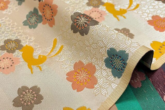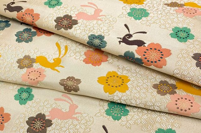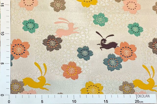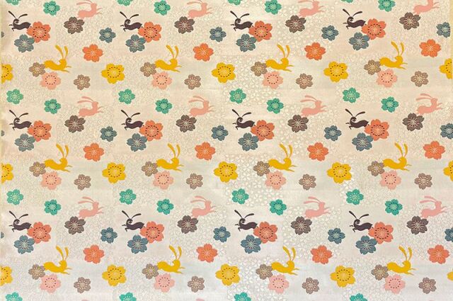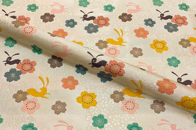 金襴織物 花うさぎ(生成り)
