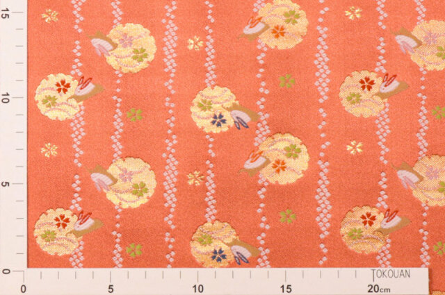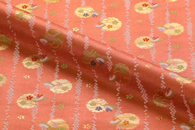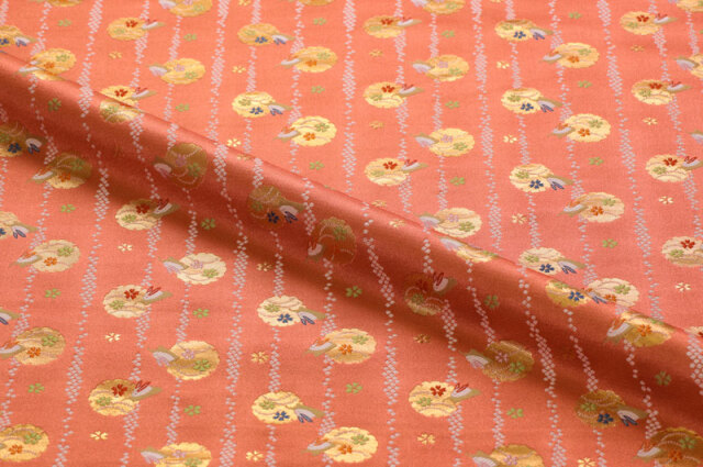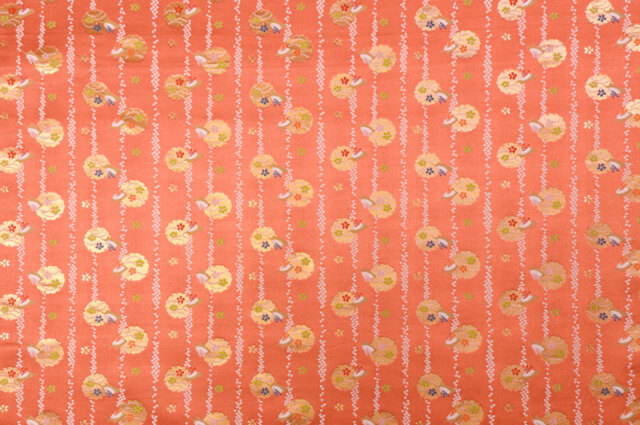 金襴織物 たて縞鹿の子に兎 (珊瑚朱)