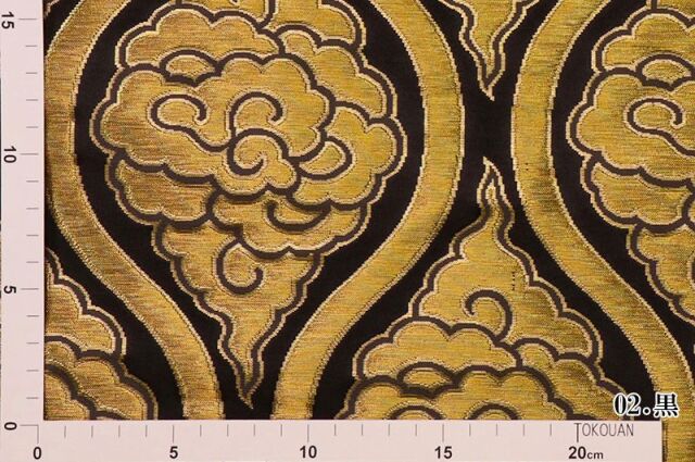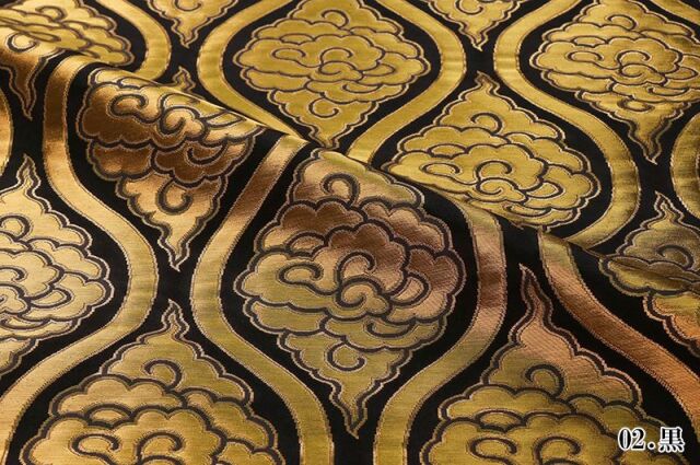 金らんと呼ばれるこの和模様の布地は、色や柄によりかっこいい、かわいい、エキゾチック、オリエンタル、豪華、高級、と印象が変わります。職人の技が詰まった一品で、和風の衣装やインテリアの装飾など多岐にわたる用途に応用できます。