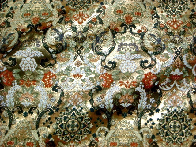 金らんと呼ばれるこの和模様の布地は、色や柄によりかっこいい、かわいい、エキゾチック、オリエンタル、豪華、高級、と印象が変わります。職人の技が詰まった一品で、和風の衣装やインテリアの装飾など多岐にわたる用途に応用できます。