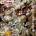こちらの和柄生地は、黒、白、黄金色の織地に、赤、紫、青、緑色などの迫力のある龍の文様を織り出した金襴生地です。どんなシーンでも使いやすい生地です。