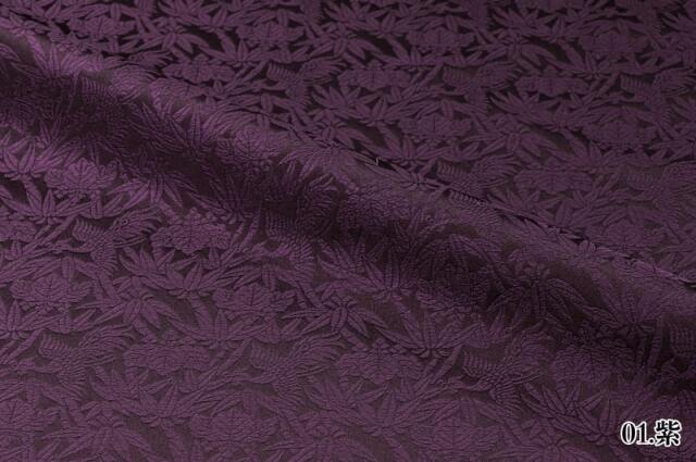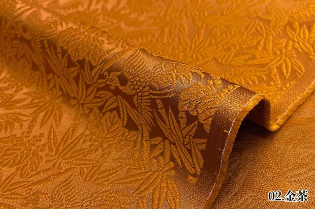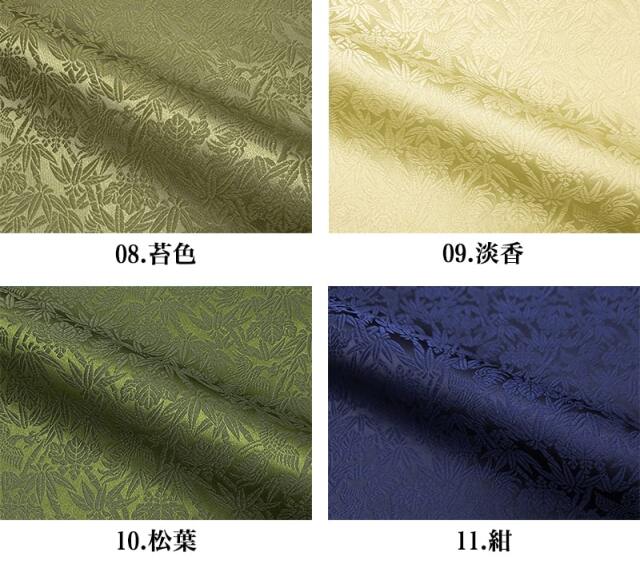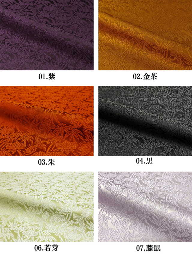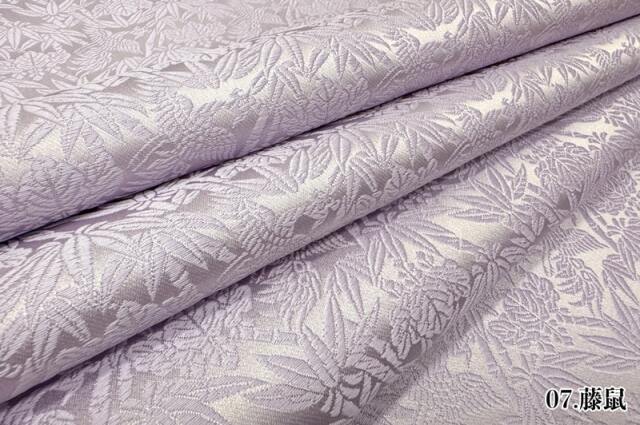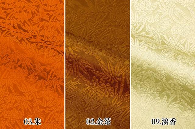 こちらの和柄生地は金糸を使っていない、一色の柄無し(無地)生地ですが、鳳凰が織り出された金襴織物です。光の加減で輝く織模様が美しく、かつ、紫系、茶、朱、黒、淡黄、緑系とカラーバリエーションも豊富なためどんなシーンでも使いやすい生地です。