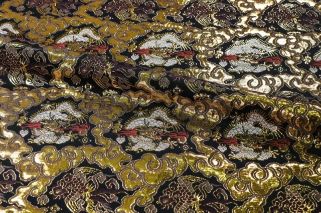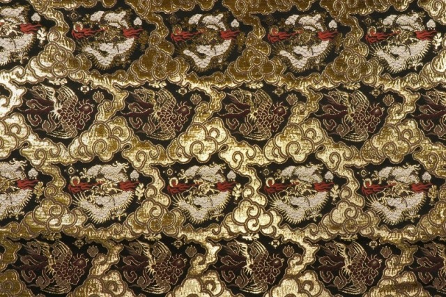 金糸で雲を織り込み、その雲間に龍と鳳凰を配した金襴生地です。
