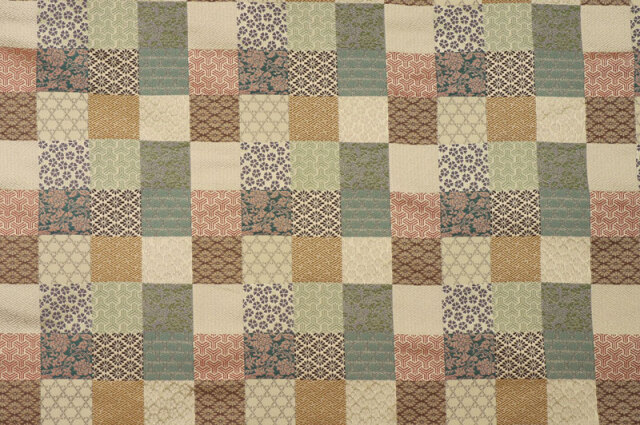 石畳の中に紗綾形や花菱等の細かな小紋柄を入れ込んだ、無金の金襴生地です。