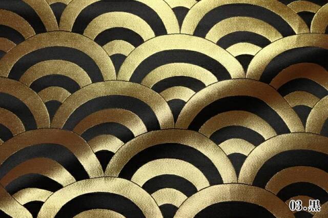 金らんと呼ばれるこの和模様の布地は、色や柄によりかっこいい、かわいい、エキゾチック、オリエンタル、豪華、高級、と印象が変わります。職人の技が詰まった一品で、和風の衣装やインテリアの装飾など多岐にわたる用途に応用できます。