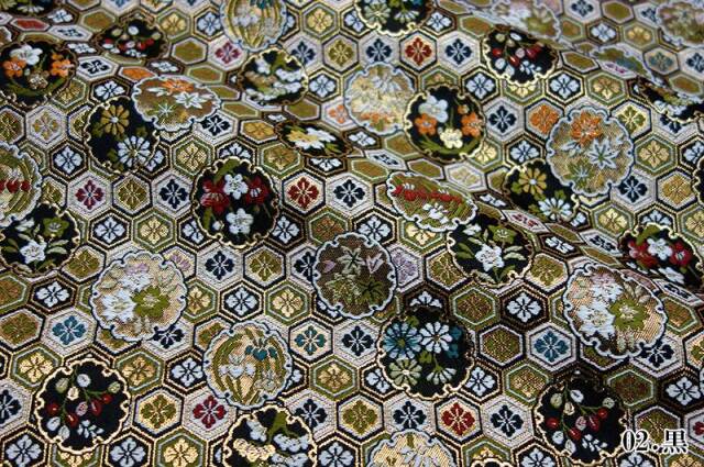 金らんと呼ばれるこの和模様の布地は、色や柄によりかっこいい、かわいい、エキゾチック、オリエンタル、豪華、高級、と印象が変わります。職人の技が詰まった一品で、和風の衣装やインテリアの装飾など多岐にわたる用途に応用できます。