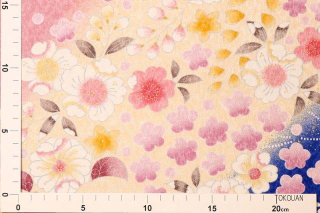 この金彩友禅は、熟練の職人によって一つひとつ丁寧に仕上げられた日本の伝統的テキスタイル。合成繊維(ポリエステル)を使用しているため、丈夫で扱いやすく、初心者の方にもおすすめです。