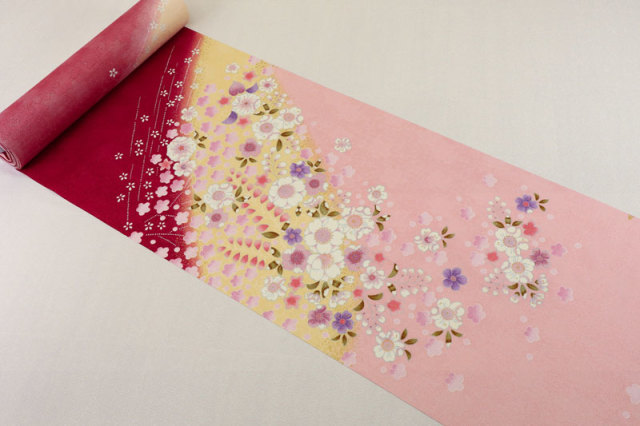 こちらのお品は伝統的な京友禅柄を晴れ着や衣装、和装小物など用に染め上げたものです。