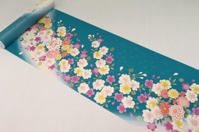 京・金彩友禅 八重桜に牡丹菊花(浅縹色)
