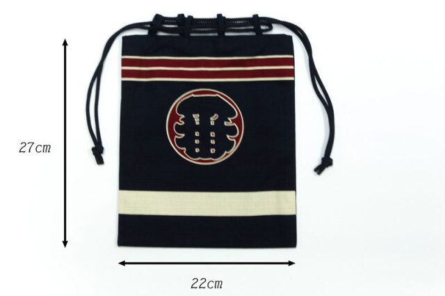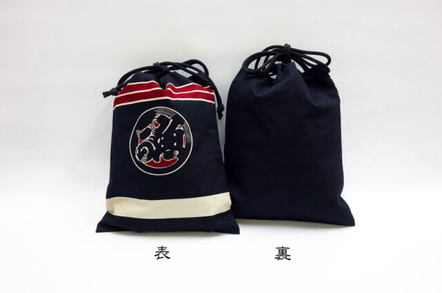 濃紺で裏地が付いた使いやすい巾着です。