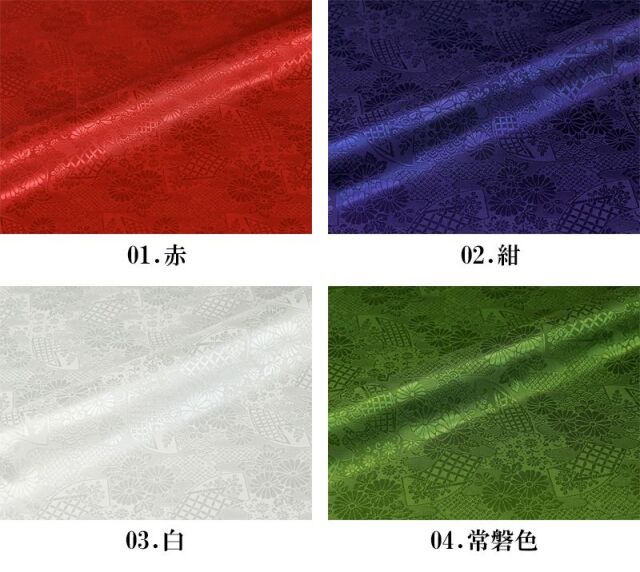 綸子は、七五三や成人式の和装衣装、舞台衣装、ぬいぐるみ衣装、犬の着物、巾着やバッグなどの和小物制作にも大人気。また、ギフトラッピング布やファブリックパネル、ランチョンマット、クッションなどのインテリア用途にも広く使われています。