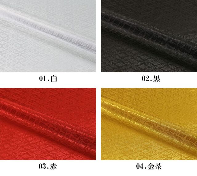 綸子は、七五三や成人式の和装衣装、舞台衣装、ぬいぐるみ衣装、犬の着物、巾着やバッグなどの和小物制作にも大人気。また、ギフトラッピング布やファブリックパネル、ランチョンマット、クッションなどのインテリア用途にも広く使われています。