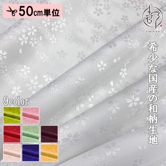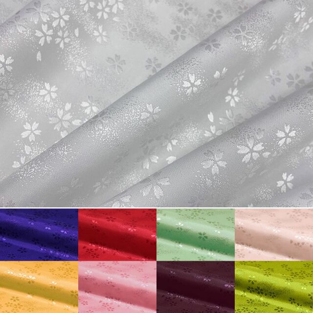 和柄 生地 京 綸子・りんず 霞桜 (全9色) 糊加工なし 50cm単位 切り売り