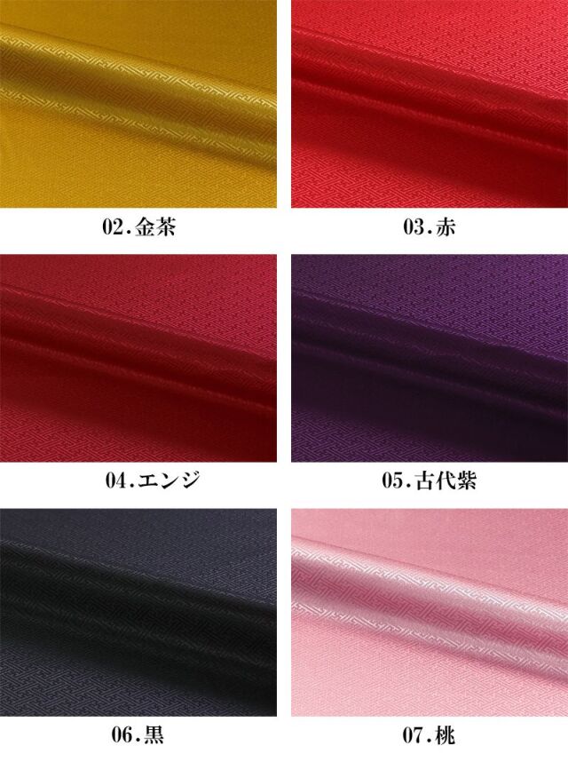 綸子は、七五三や成人式の和装衣装、舞台衣装、ぬいぐるみ衣装、犬の着物、巾着やバッグなどの和小物制作にも大人気。また、ギフトラッピング布やファブリックパネル、ランチョンマット、クッションなどのインテリア用途にも広く使われています。