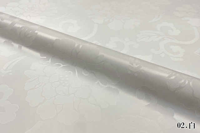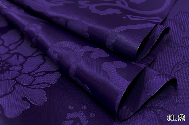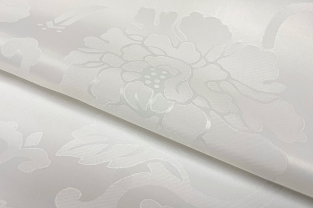 サテンのような上品な光沢が美しい上質な生地で、見る角度によって織り柄が浮かび上がる高級感あるジャガード織です。