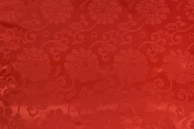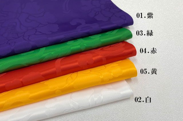 綸子はその上品な質感と静かな華やかさから、寺社の敷布や仏壇まわり、掛け軸や屏風の装飾布としても使われています。