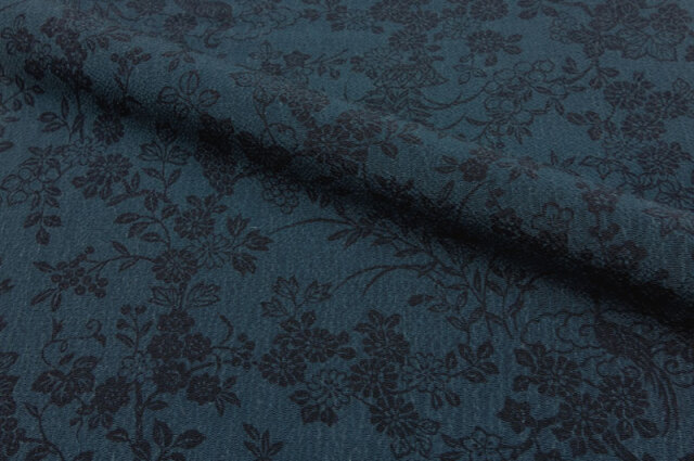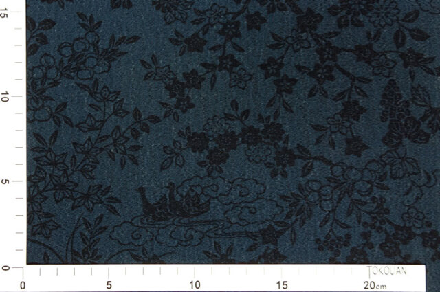 正絹 丹後ちりめん 藍染 草花鳥文様