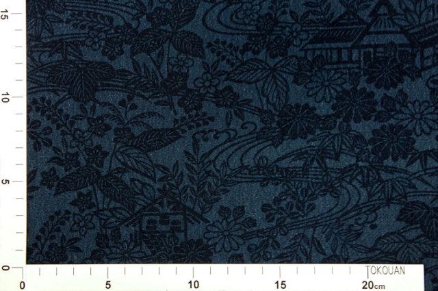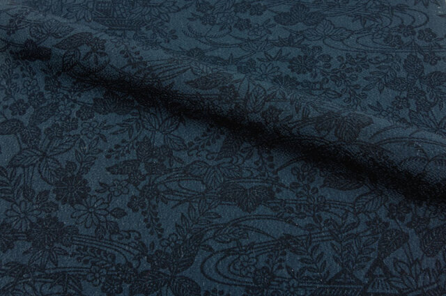 正絹 丹後ちりめん 藍染 茶屋辻文様