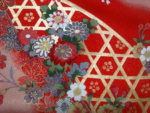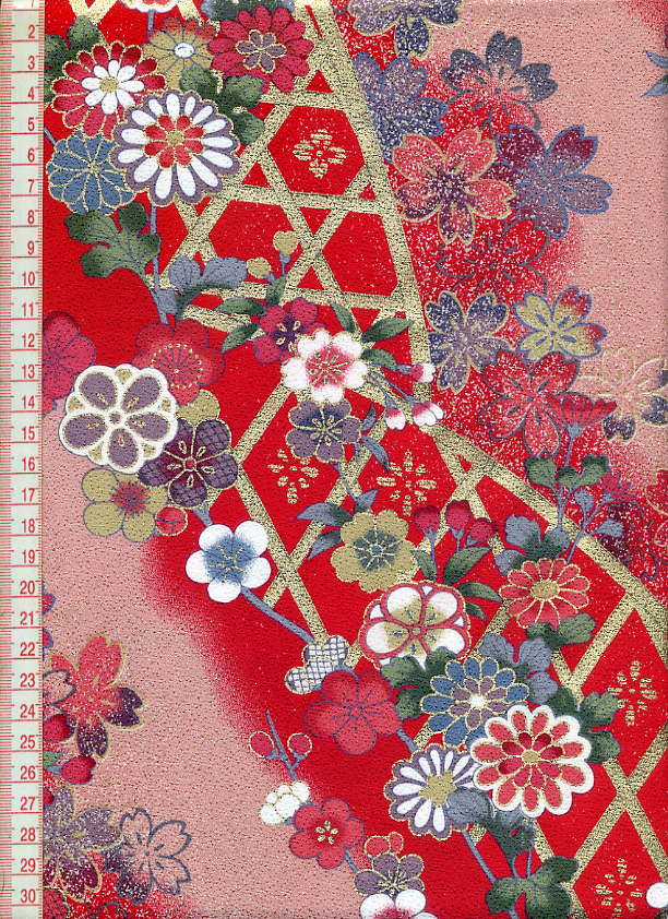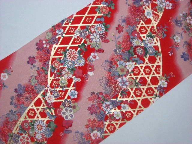 京・正絹金彩友禅 光悦垣文(赤かすみ)