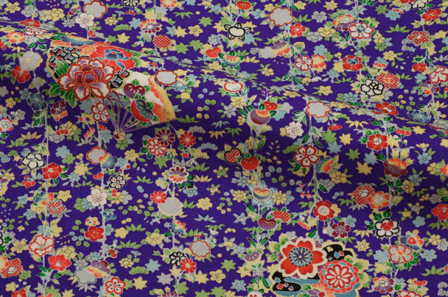 当店の金彩友禅は、10cm単位カット販売のため、カットクロスやはぎれとしても手軽にご購入いただけます。ハンドメイドやクラフト生地としてのご利用はもちろん、和風衣装や舞台衣装、お祭り衣装、犬の着物、ワンコ衣装など、幅広いコスチューム制作にも対応可能。
