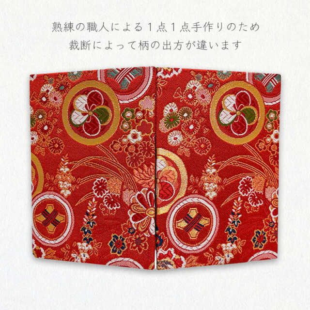御朱印帳 金襴織物 花に丸紋散らし (赤)