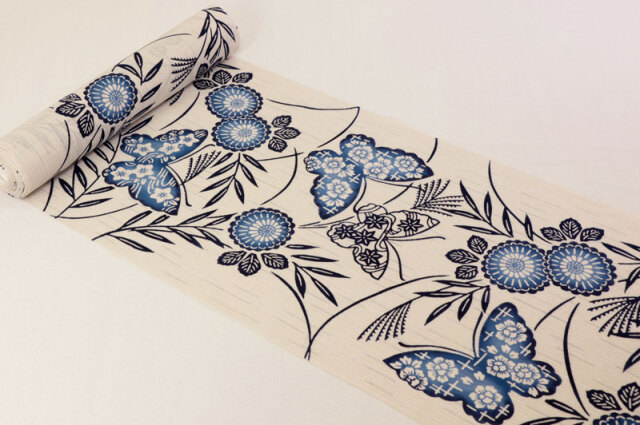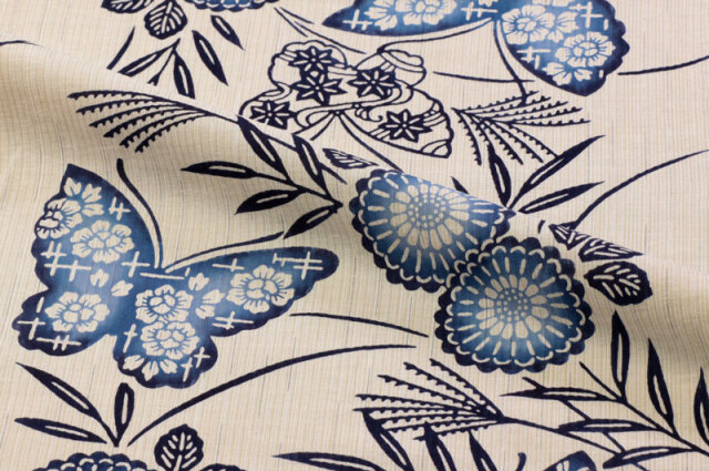 注染浴衣生地 菊花に蝶